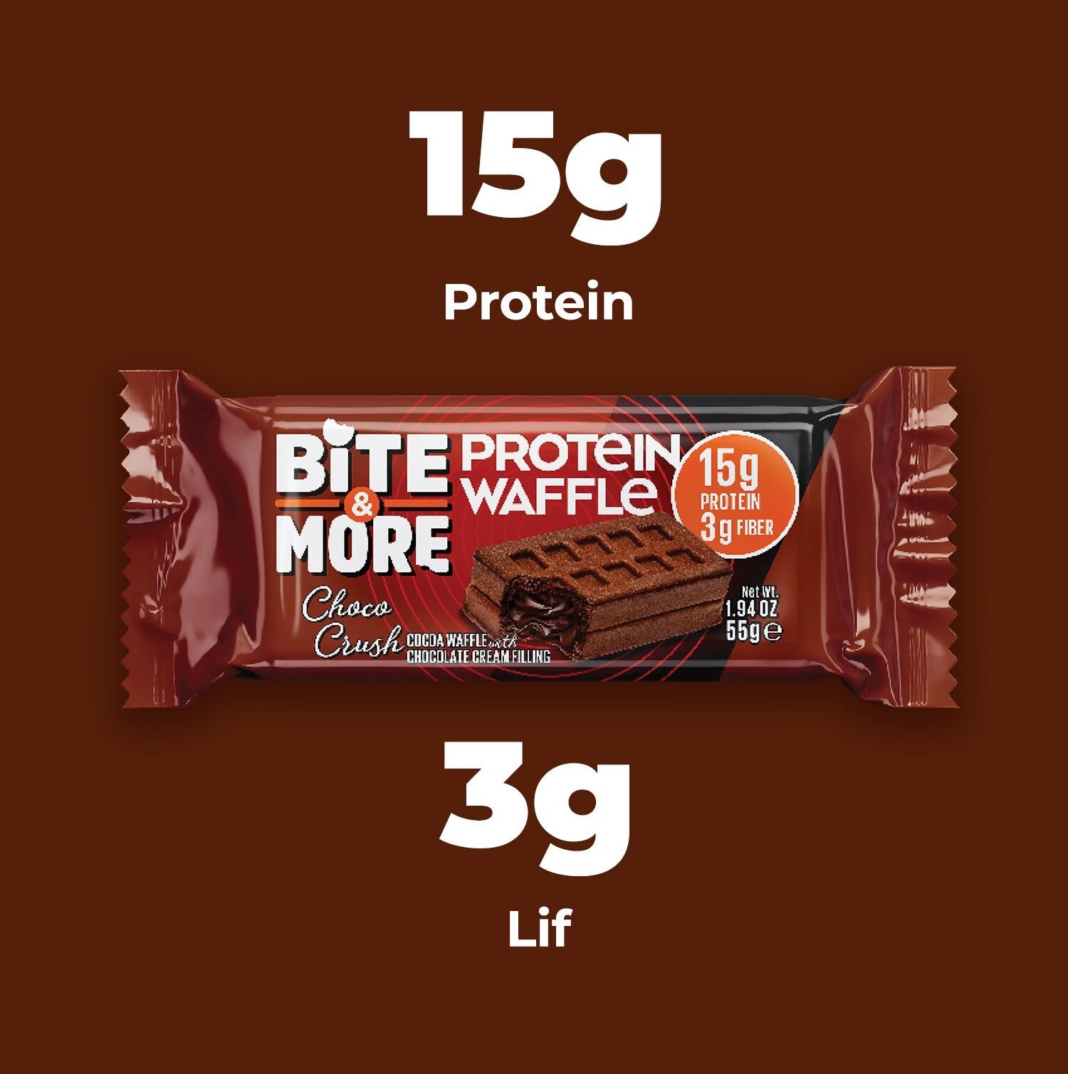 Tatlı keyfinizi yüksek proteinle birleştirin, kakaolu yumuşacık dokusuyla Bite & More Protein Waffle – Çikolatalı gününüze lezzetli bir enerji katın!