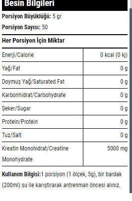 Kreatin insan vücudunda karaciğer ve böbrekte, üç temel amino asitin (arjinin, glisin, metionin) doğal olarak sentezlenmesi sonucunda oluşan doğal bir amino asit türevidir. Kreatinin en temel görevi ani ve güç gerektiren hareketlerde kaslara enerji sağlamaya yardımcı olmaktır. Kreatin kasların gerçek enerji kaynağı olan ATP nin (Adenosine triphosphate) miktarını artırmaya, dolayısıyla kreatin takviyesi gerçek bir güç artışı sağlamaya yardımcı olur.Antrenman sırasında, sürekli olarak ATP üreten tek madde olması nedeniyle, Kreatin gerçek güç performansı artışı sağlayan tek sporcu gıdasıdır.